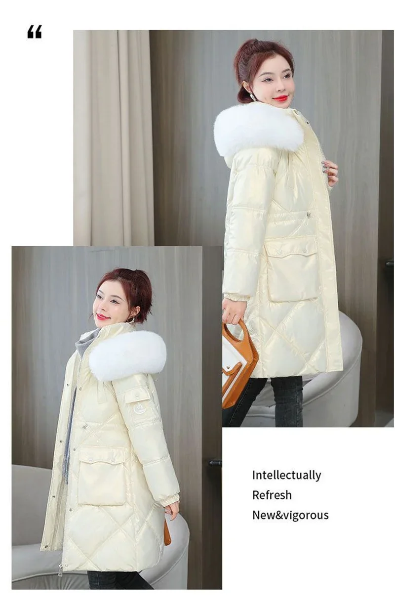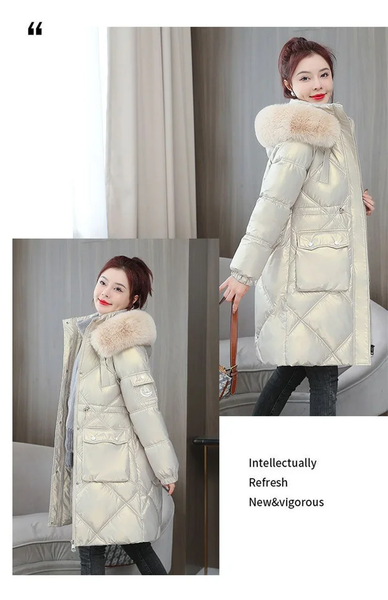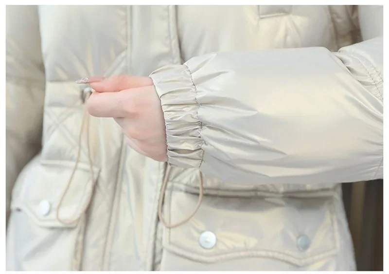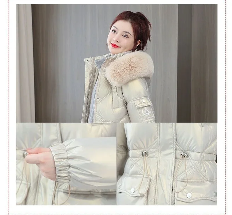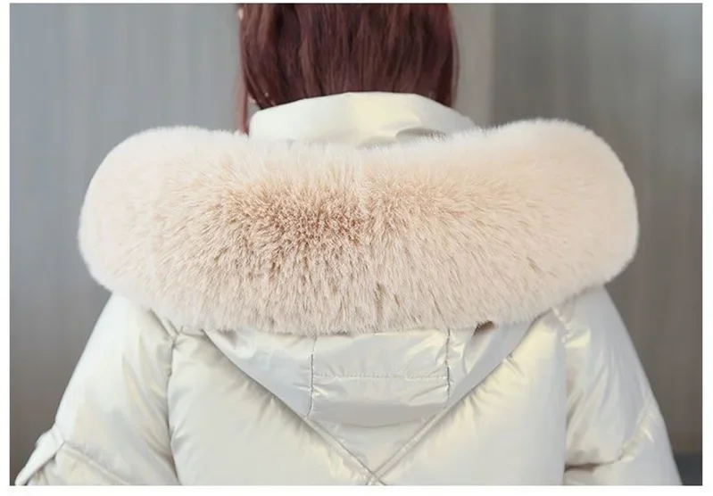 Champagne Winter Jacket Parkas Women Coat Fur Collar Hooded