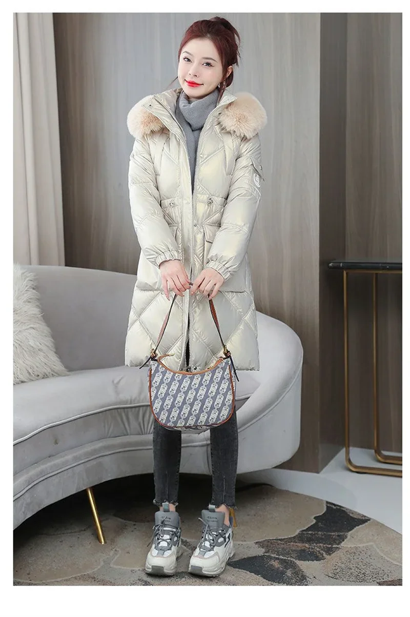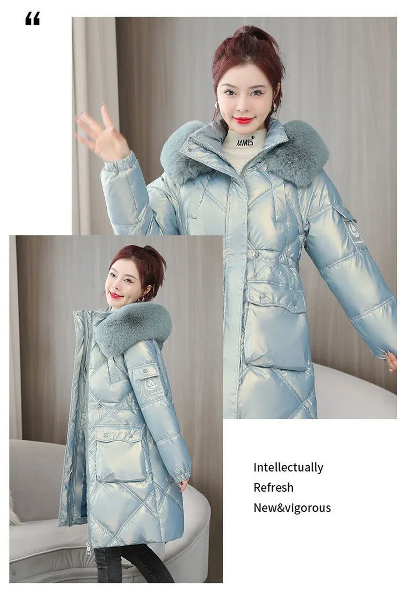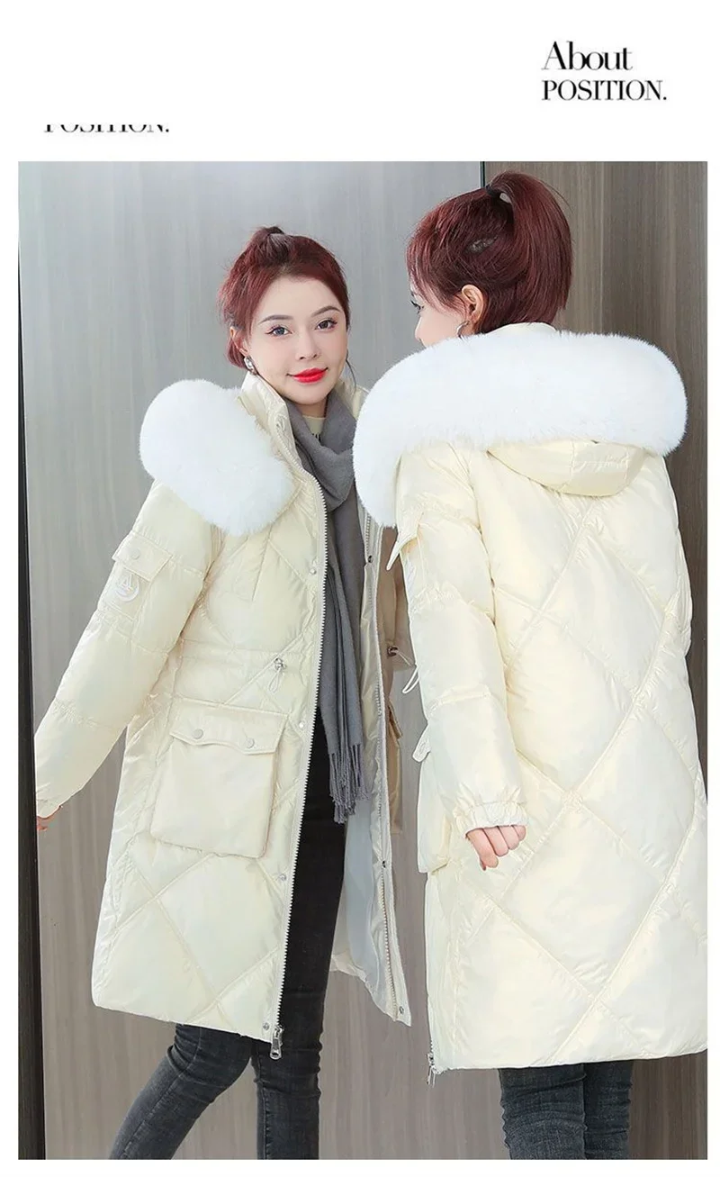 Champagne Winter Jacket Parkas Women Coat Fur Collar Hooded