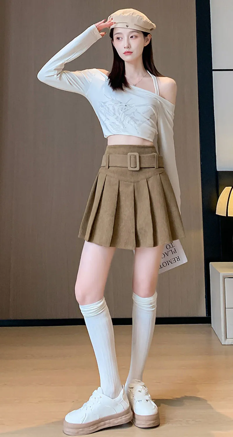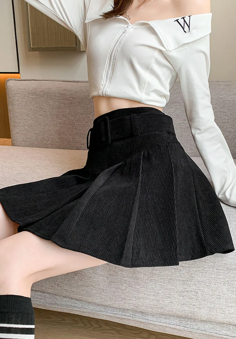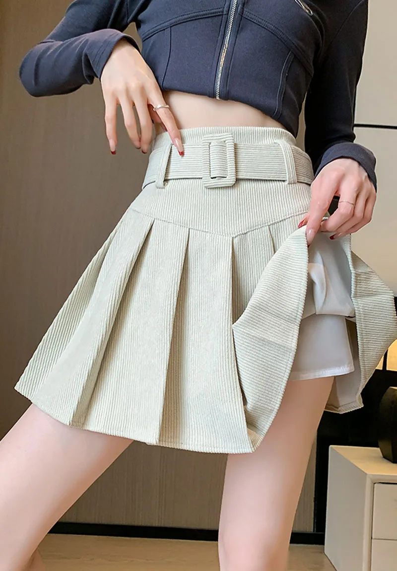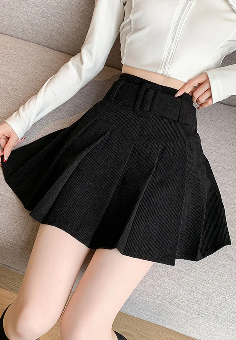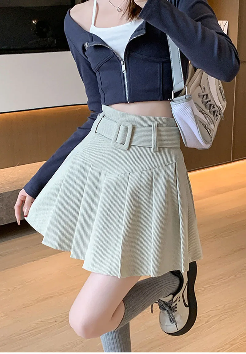 High Waist Pleated Skirt Woman Fashion with Belt A-Line Skirts
