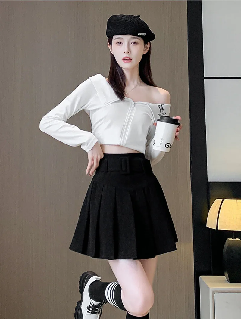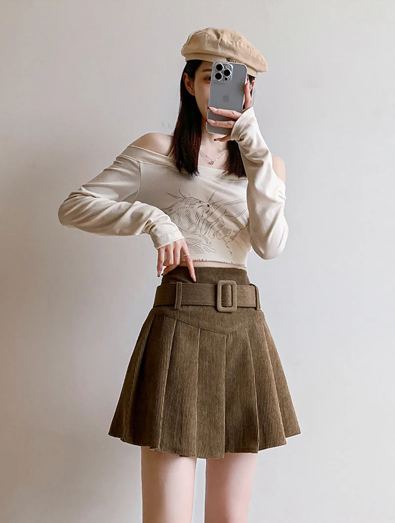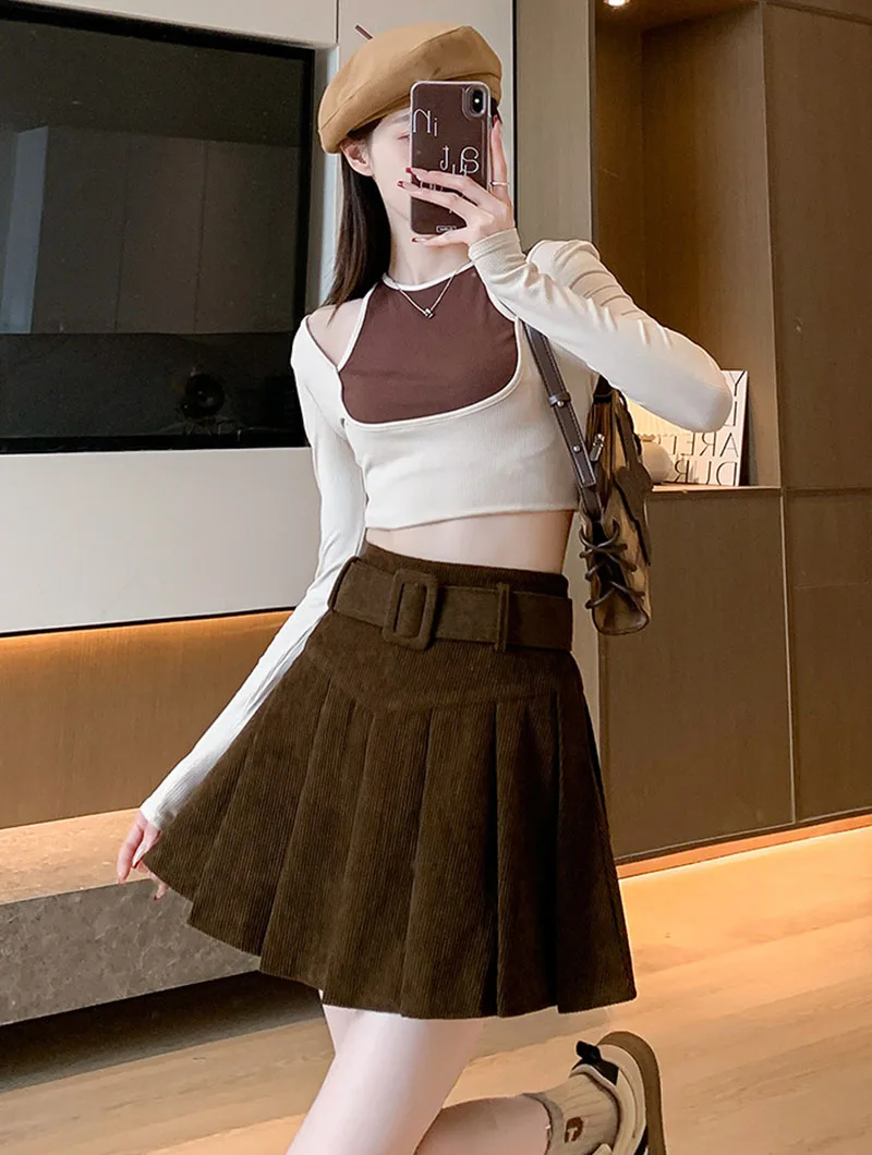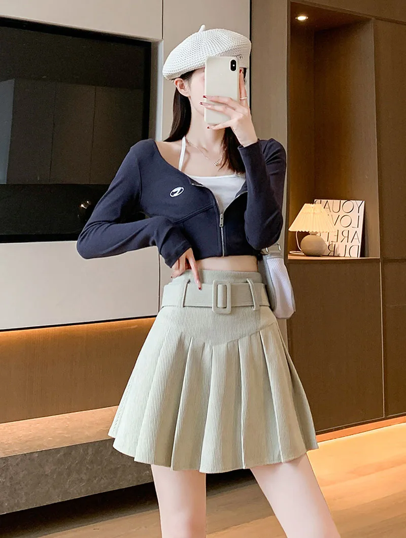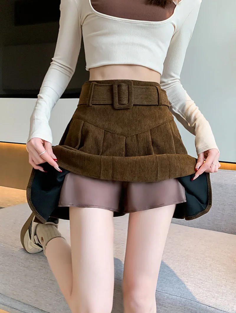 High Waist Pleated Skirt Woman Fashion with Belt A-Line Skirts