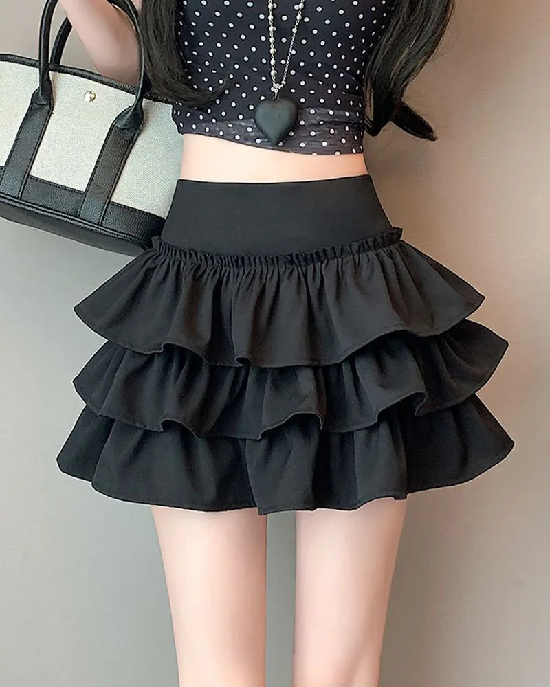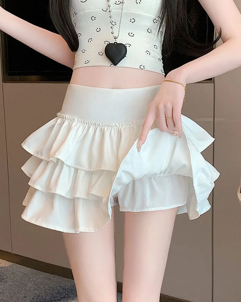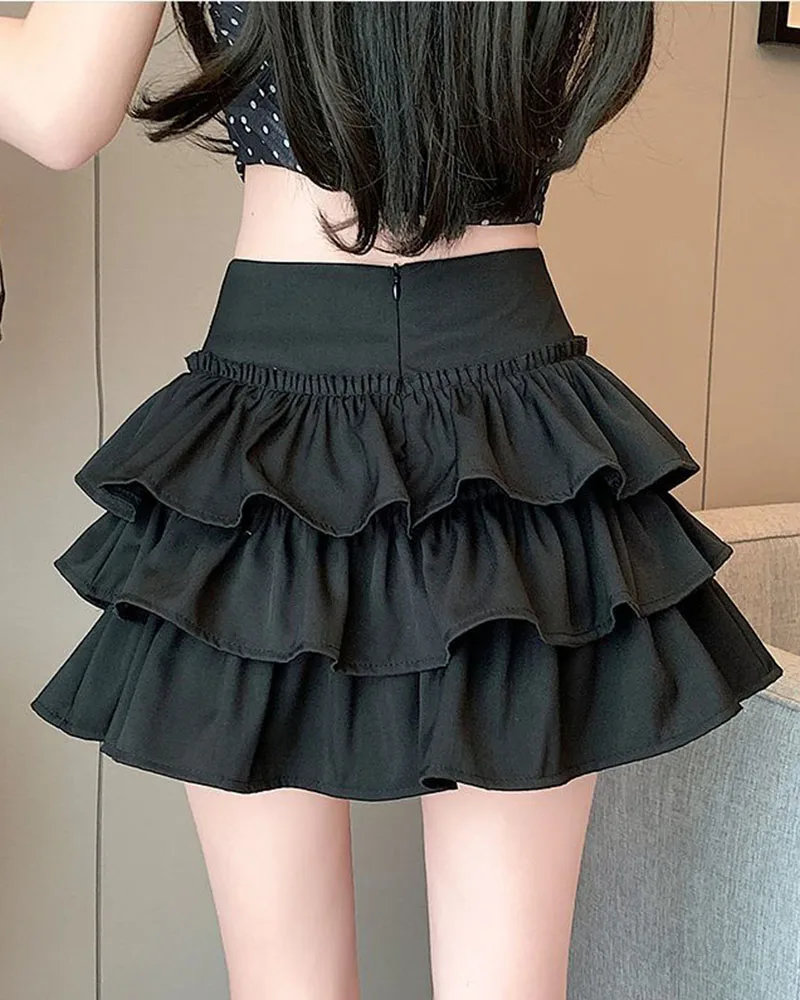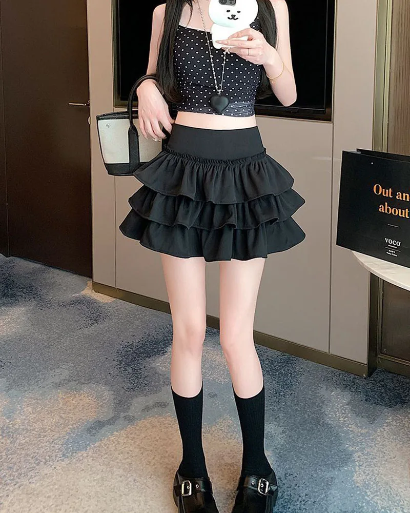 Korean Puffy Ruffles Cake Women Mini Skirt