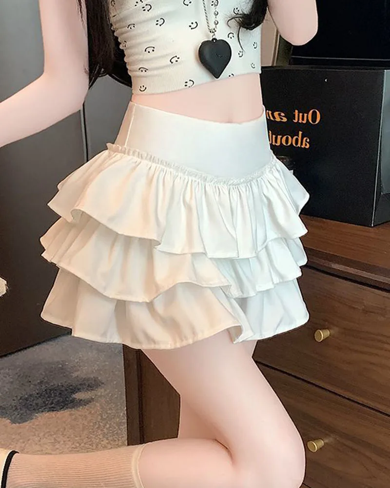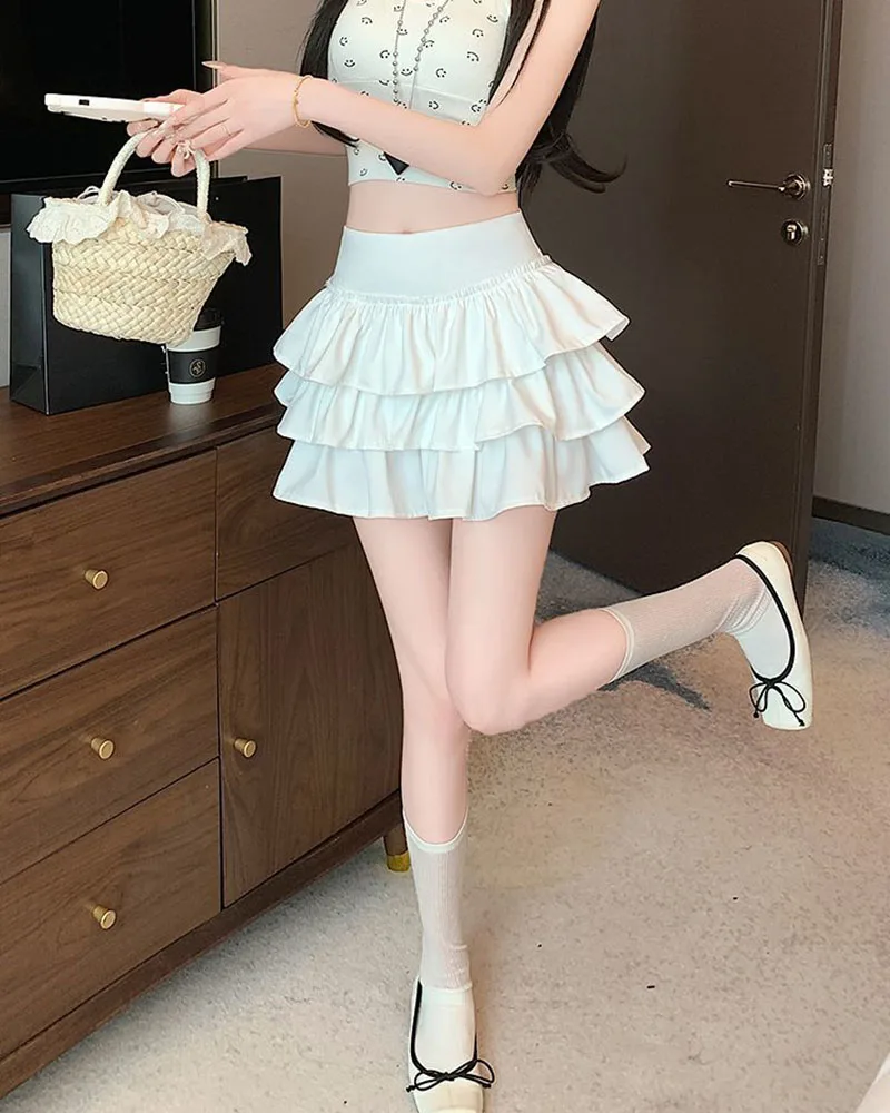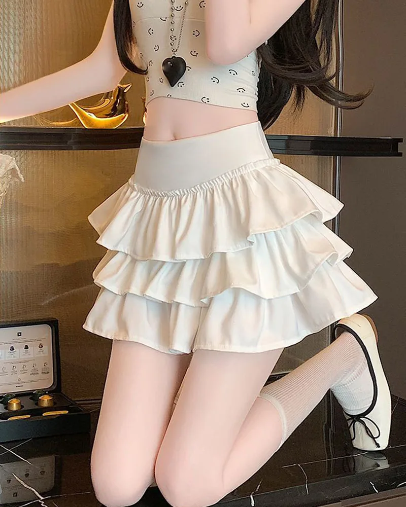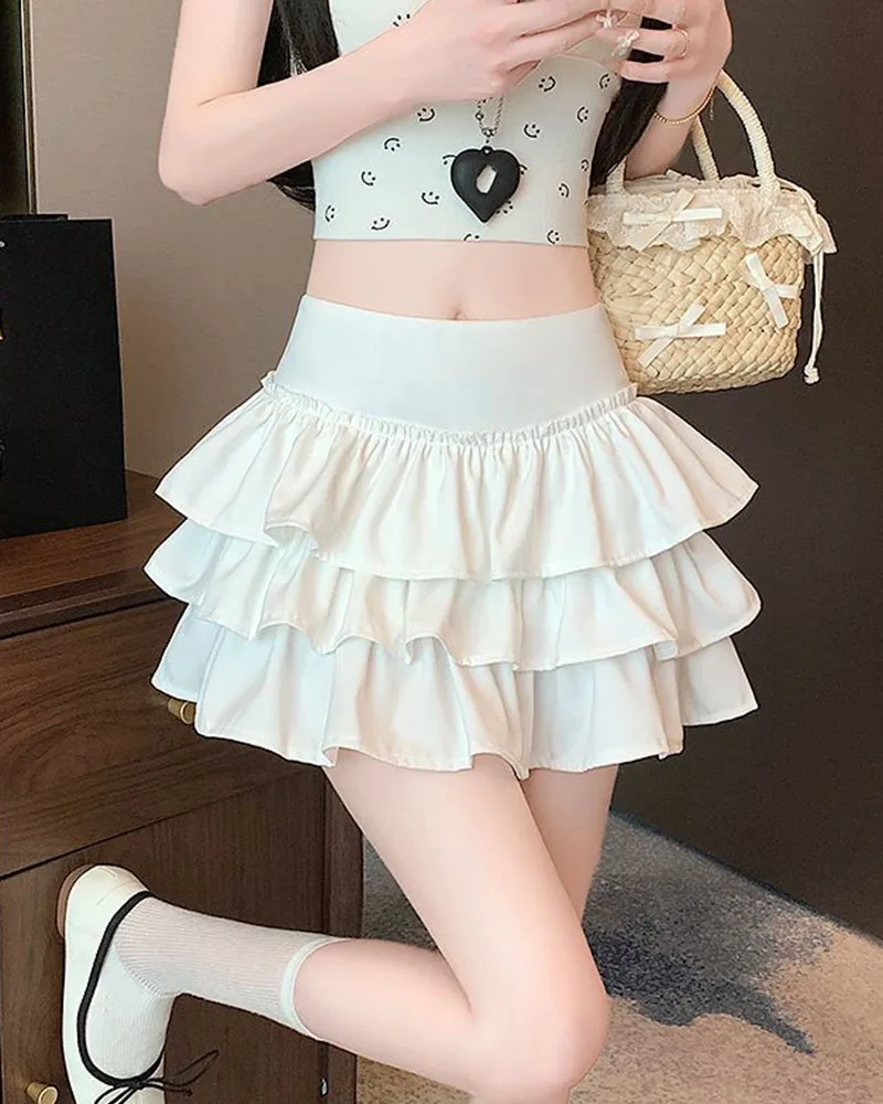 Korean Puffy Ruffles Cake Women Mini Skirt