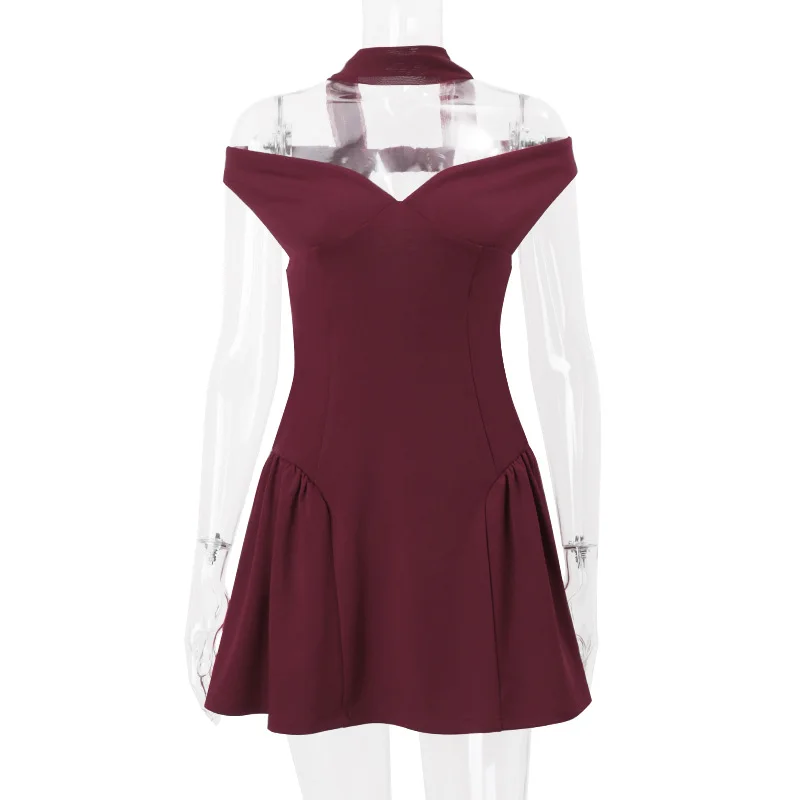 Off Shoulder Draped V Neck Mini Outfit Dress