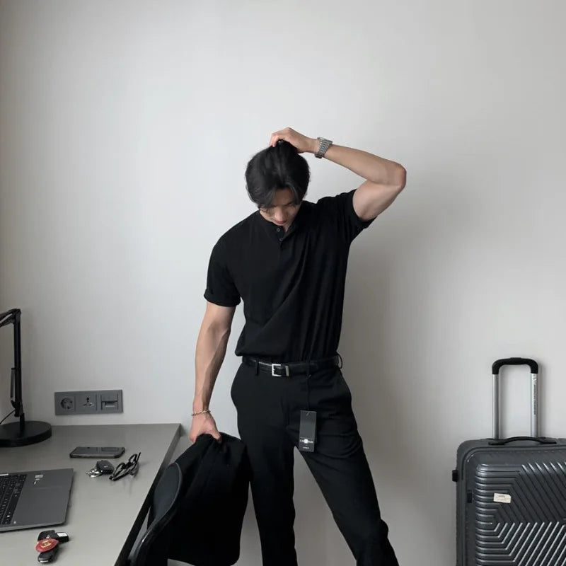 Summer Men‘s Short Sleeve Henley Neck T Shirts