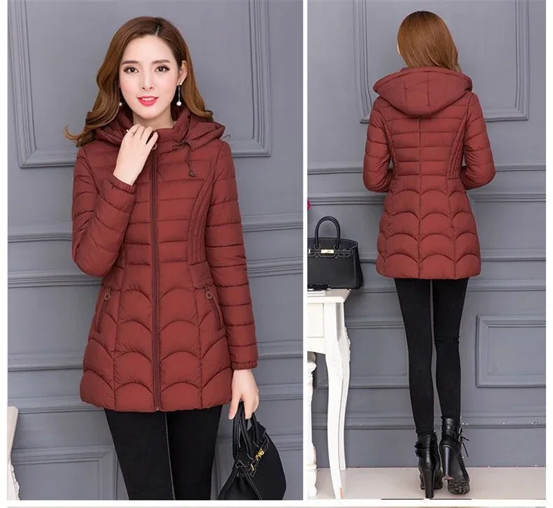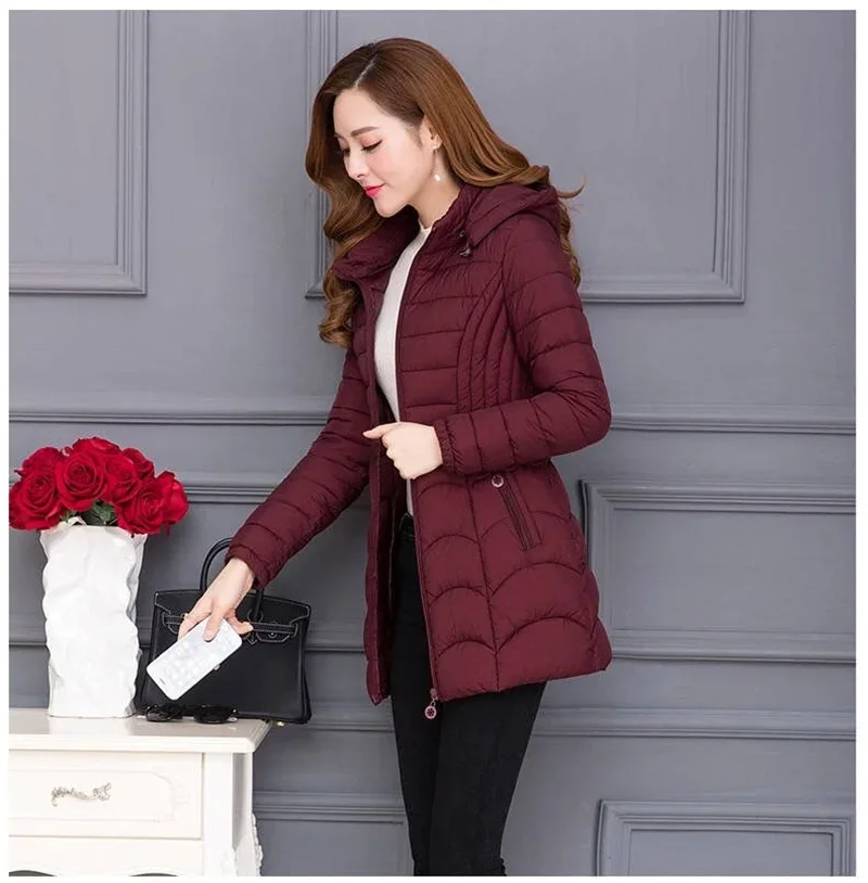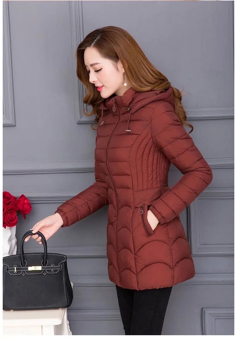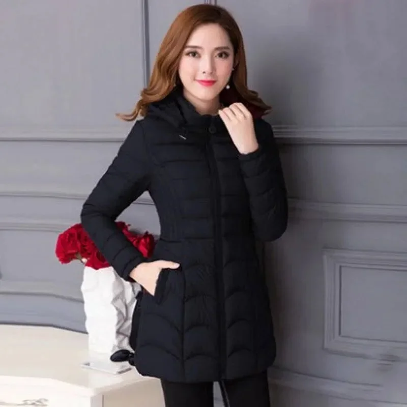 Winter Coat Slim Down Cotton Hooded Jacket Warm Thick Outwear Parka